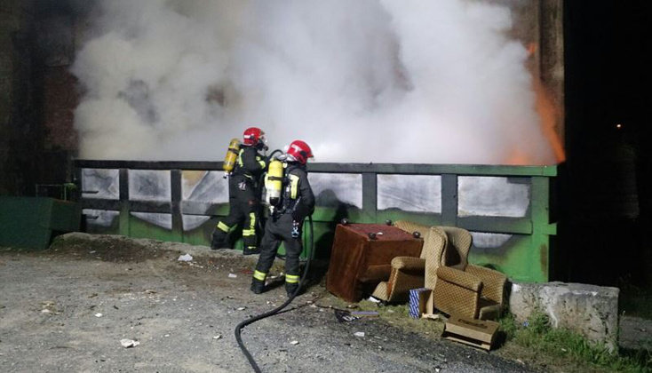La pasada noche bomberos del 112, en este caso pertenecientes al parque de Laredo, extinguieron también un incendio originado en un contenedor tipo góndola, de grandes dimensiones, del punto limpio situado junto al campo de fútbol de Noja.