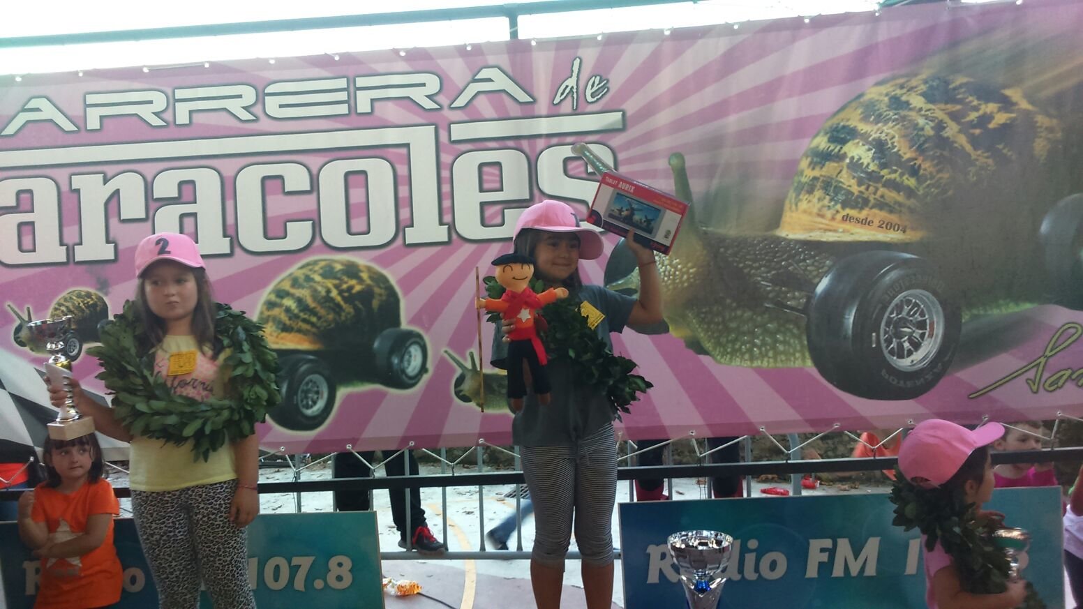 “Yo llevo varios días con mi caracol, no es que le entrene pero es importante prepararle las horas previas con lechuga y humedeciéndole”, dice, antes de dejar su caracol a las comisarias de pista,  Joel Díaz de siete años. Es la tercera vez que el niño de Molledo participa en el torneo de moluscos. Cerca de el se encuentra Paula Expósito, de Torrelavega, novata en este tipo de disputas. La joven torrelaveguense asiste atenta a todo lo que ocurre en “La Cubierta” del pequeño pueblo del Valle de Buelna. Al final de todo asombrada se dirige a su abuela para mostrarla su sorpresa por la detallada entrega de trofeos en el podium, al más puro estilo Formula 1.