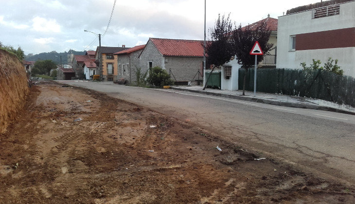 Las obras de construcción de la acera Bº El Campo de Oruña