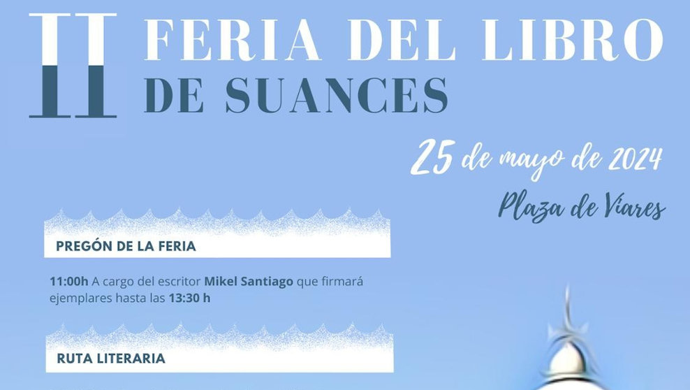La II Feria del Libro de Suances contará con un amplio programa de actividades culturales y abrirá sus puertas a las 11:00 horas con el pregón a cargo del escritor Mikel Santiagoque presentará su última novela, 'El hijo olvidado' y firmará ejemplares de sus obras. A las 12:00 horas la organización ofrecerá la posibilidad de participar en la ruta literaria guiada 'Suances y los Libros del Puerto Escondido', basada en las novelas de la escritora María Oruña.