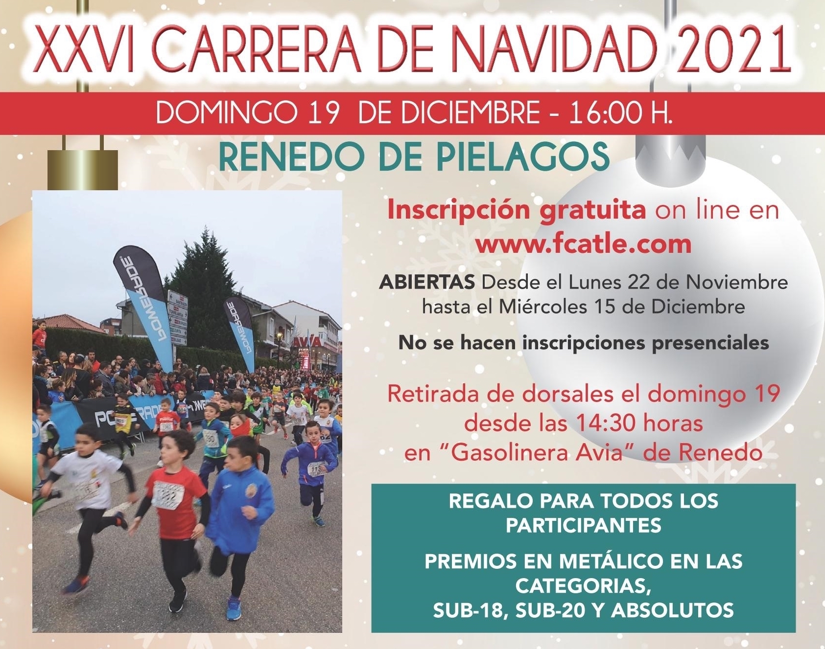 La XXVI Carrera de Navidad, organizada por el Ayuntamiento de Piélagos con el patrocinio de la Federación cántabra de Atletismo, RTVE, el Centro de Jardinería La Encina y Gasolinera Avia Renedo, incluirá premios en metálico en las categorías Sub-18, Sub-20 y Absolutos. Asimismo, todos los participantes recibirán un regalo.