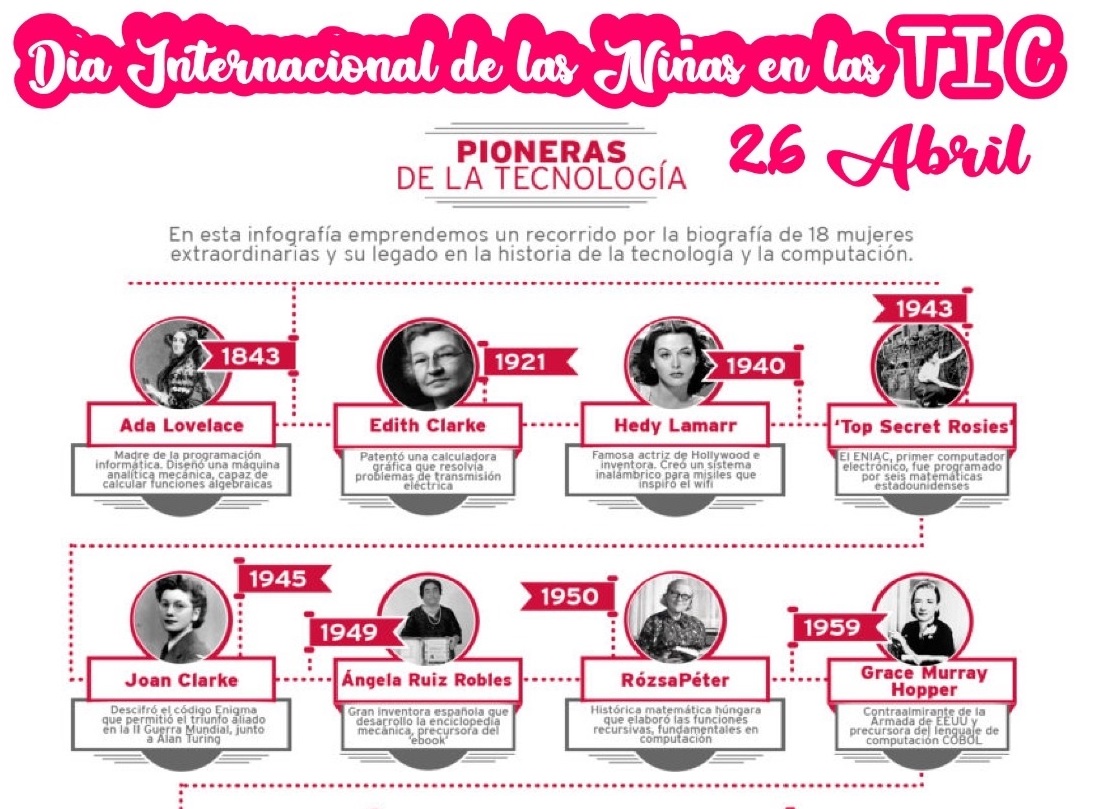El Ayuntamiento de Reocín celebrará este 26 de abril el Día Internacional de las Niñas en las TIC (Tecnologías de la Información y la Comunicación) difundiendo la aportación de las mujeres al mundo de la tecnología. Para ello, se colocarán en centros educativos y edificios municipales carteles con los nombres y aportaciones de 18 mujeres que han dejado su sello en este ámbito a lo largo de la historia.