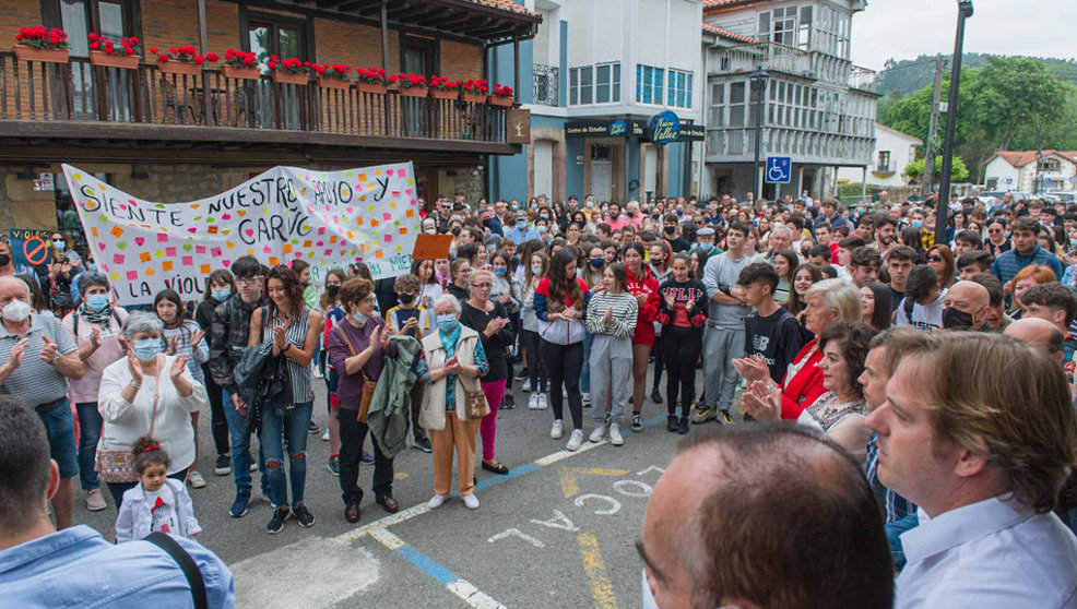 Junto al alcalde han participado en la concentración la consejera de Educación, Marina Lombó; miembros de la Corporación; alumnos y docentes de los tres centros educativos del municipio, entre ellos el IES Nueve Valles en el que estudia el joven agredido; y vecinos que han querido concentrarse bajo el lema 'En Reocín ni una agresión más'.