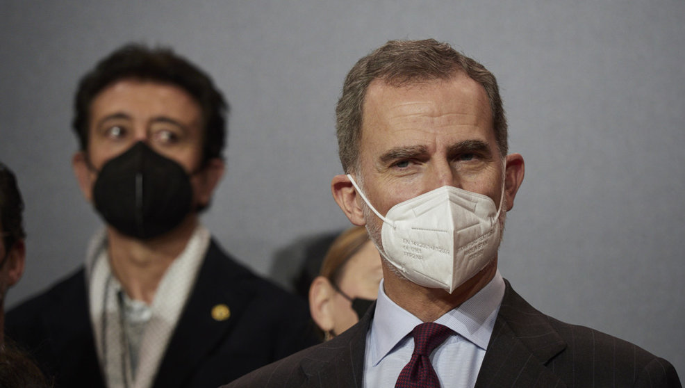 El Rey Felipe VI en el acto de entrega de las medallas de oro al Mérito en las Bellas Artes 2022, en el Palacio de Congresos y Auditorio de Navarra, 2 de marzo de 2022, en Pamplona, Navarra (España)