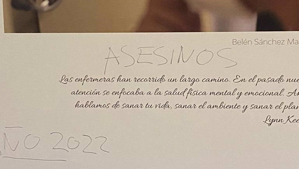 La exposición itinerante 'Miradas enfermeras de la pandemia', organizada por Colegio de Enfermería de Cantabria, ha sufrido actos vandálicos a su paso por la localidad de Liencres, en Piélagos, según ha informado el Ayuntamiento en un comunicado. En concreto, y de acuerdo con imágenes difundidas por el Consistorio junto a la nota de prensa, sobre algunas de las fotografías -que se acompañan de textos- pueden leerse mensajes pintados con insultos y críticas al colectivo, algunos relacionadas con el exceso de mortalidad.
