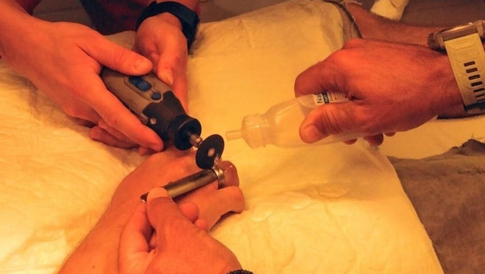 Efectivos de los bomberos autonómicos se desplazaron al hospital comarcal a requerimiento del personal sanitario para proceder a la retirada de un anillo de acero a un paciente que se le había atascado en su dedo. Para retirarlo, los bomberos tuvieron que cortar el anillo con una dremel y así liberar el dedo, según informa el 112 en su cuenta de X (antes Twitter).