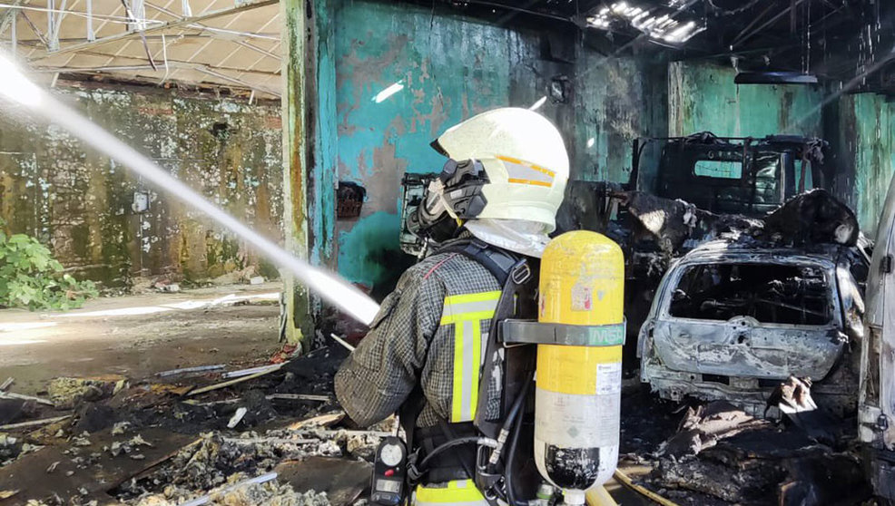 Calcinados una nave de la antigua trefilería de Ramales y vehículos tras un incendio