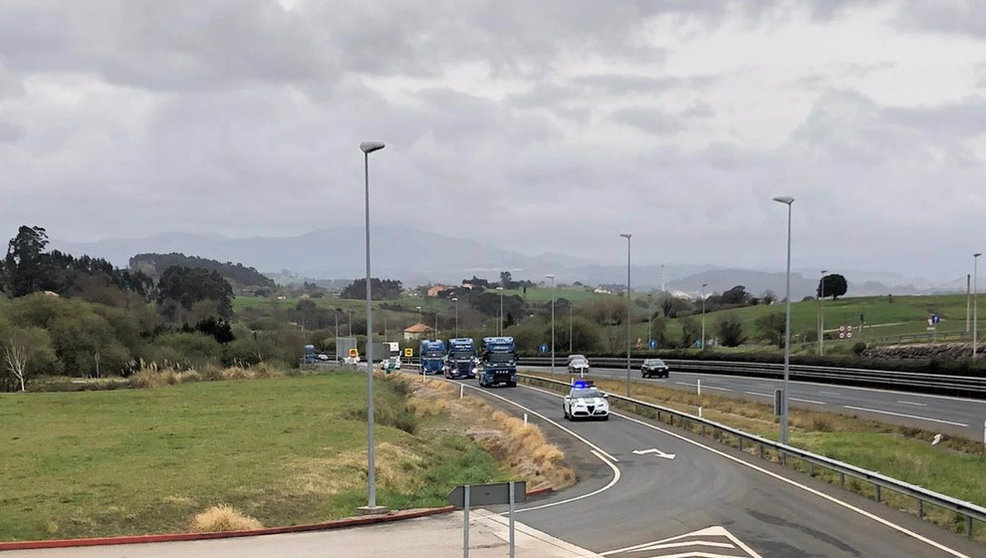 Agentes de la Guardia Civil escoltan a camioneros en Cantabria con motivo de la huelga