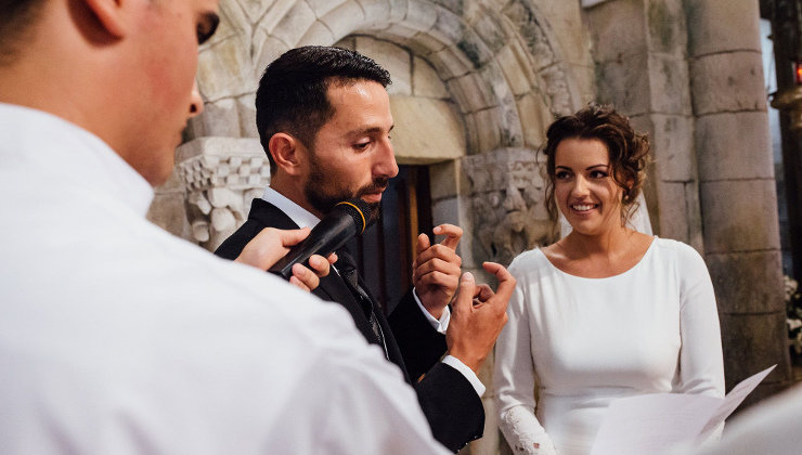 La Colegiata de Castañeda acoge la boda en lengua de signos de Alberto, sordo, y Paola, intérprete; un evento lleno de energía positiva.