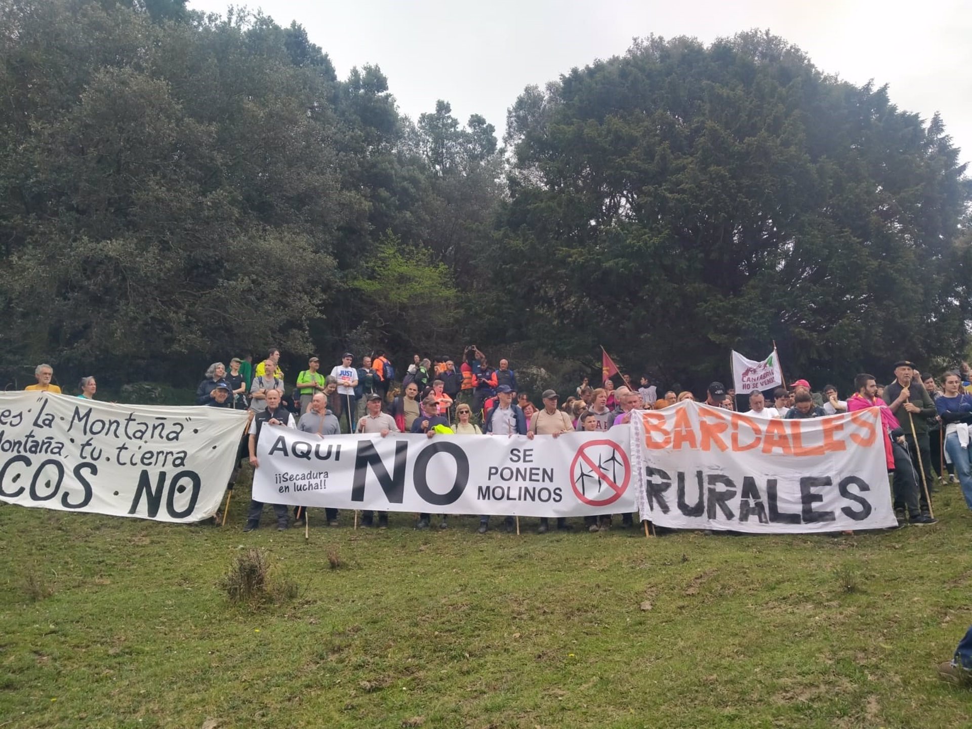 Cerca de 300 personas, según la organización, han participado este sábado en una marcha de montaña que ha ascendido a la Sierra del Sel y Fuente Pico, en Voto y Ruesga, para protestar contra los parques eólicos proyectados en estos dos municipios, donde se instalarían 13 molinos, así como los previstos en Bárcena de Cicero y Hazas de Cesto.