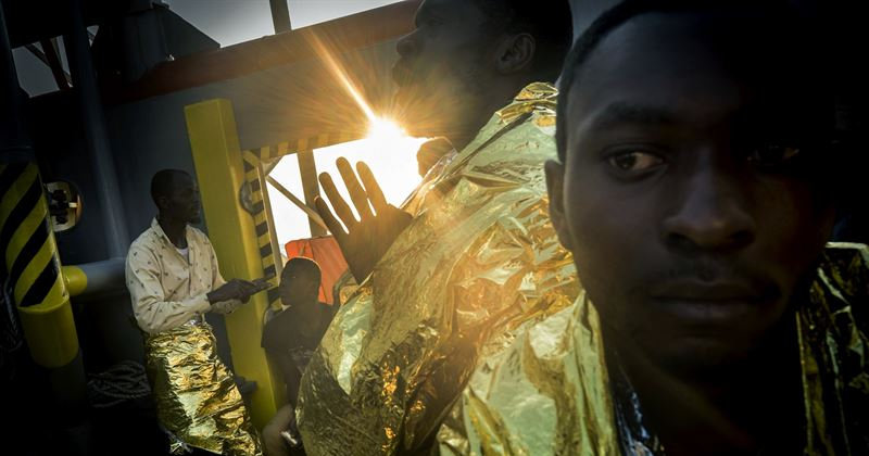 Refugiados a bordo del Bourbon Argos, barco de rescate de MSF hacia Italia