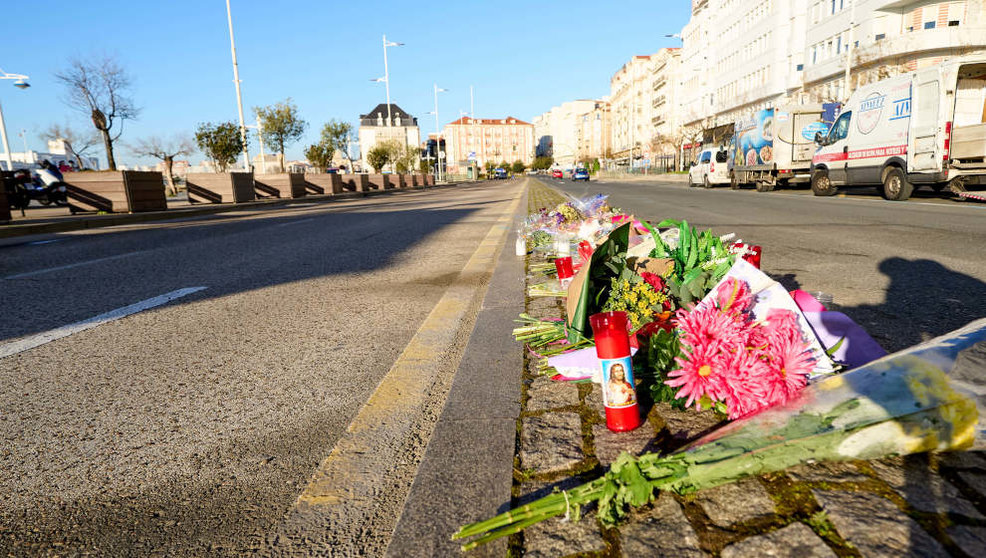 Flores en la calle Castelar donde se produjo el accidente mortal