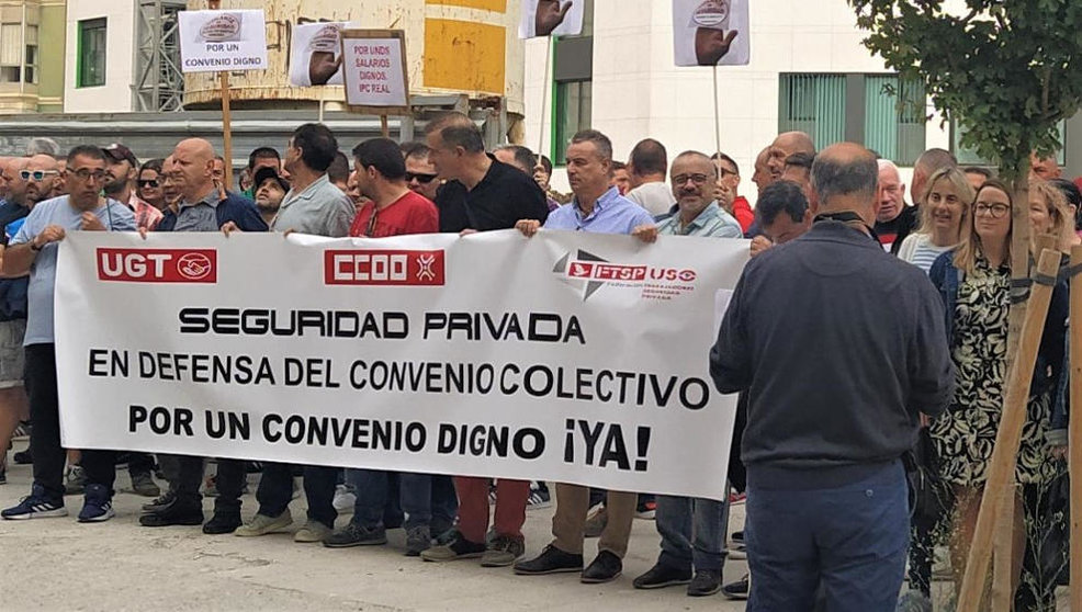 Los vigilantes de seguridad se concentraron ante el Parlamento de Cantabria, donde la plantilla ya sufría impagos
