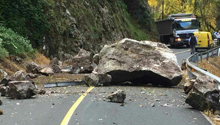 Una enorme roca ha caído sobre la carretera impidiendo el paso de los vehículos. No ha habido heridos ni daños personales.