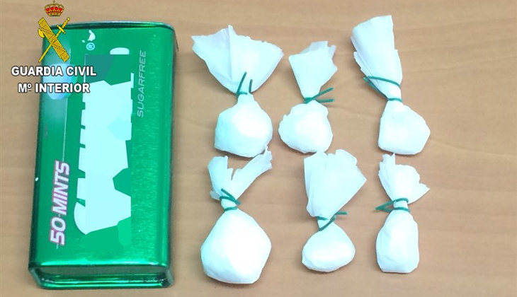 Las 6 bolsitas de cocaína incautadas por la Guardia Civil