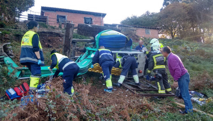 La máquina volcó cuando el hombre se encontraba moviendo tierra de un talud en Udías.
