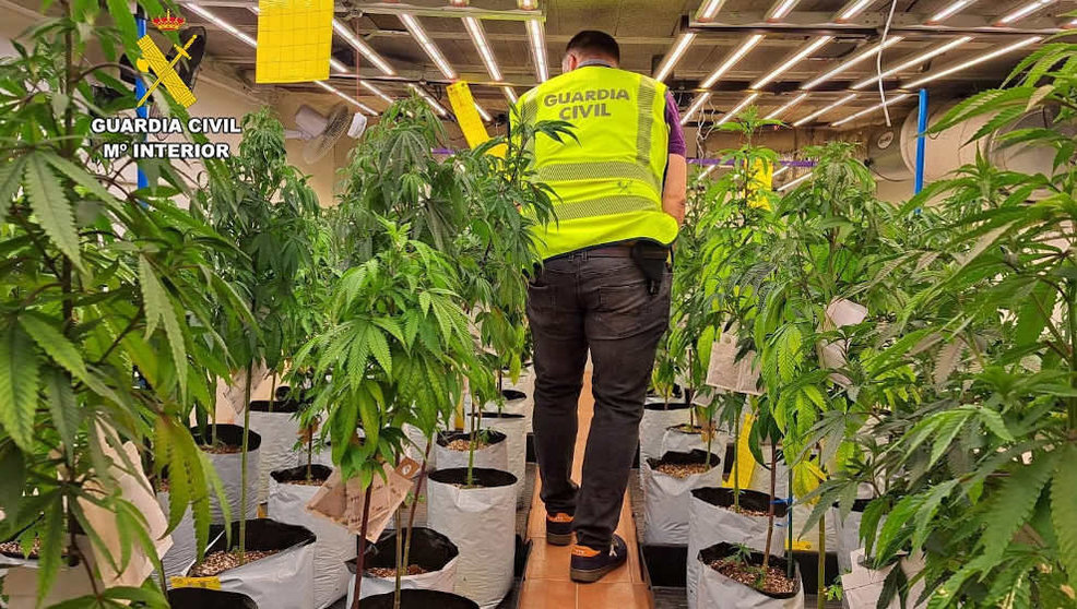 Después de diferentes indagaciones durante este mes de agosto, se practicó un registro en el domicilio, donde se localizaron en dos salas anexas al garaje sendas plantaciones con marihuana en diferente estado de crecimiento, con el fin de tener producción todo el año.
