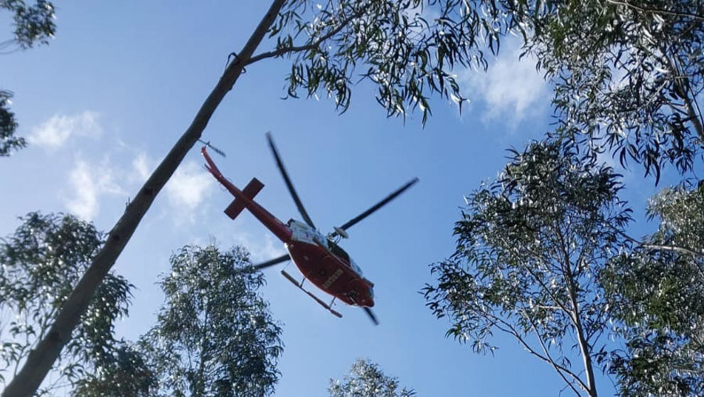 La aeronave le ha localizado en una pista forestal que discurre por el interior un eucaliptal. Un rescatador y un médico han descendido en grúa hasta él y han comprobado que se encontraba desorientado pero en buen estado.