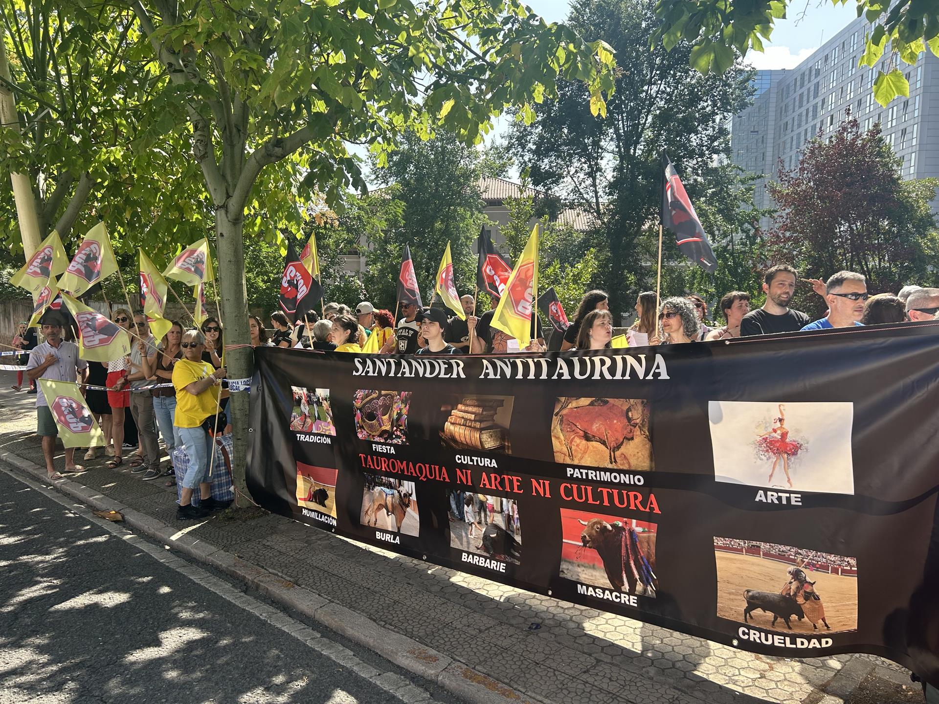 Durante la manifestación, además de las pancartas, se volvió a desplegar un conjunto de letras que formaron la frase “fiestas sin torturas”. Como otra de las acciones de esta campaña, el colectivo Cantabria contra la tauromaquia ha convocado para este sábado 26 una nueva concentración a la misma hora y en el mismo lugar.