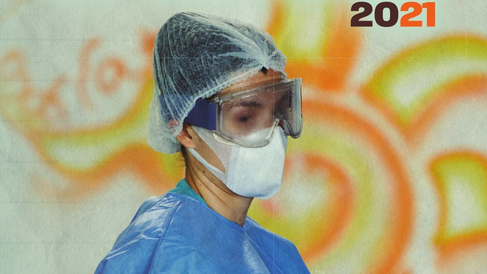 Este sexto 'Diario de Opiniones' rinde un homenaje a los profesionales sanitarios a través de su portada, pero en lugar de realizarla un artista, como las anteriores, en esta ocasión es la fotografía titulada 'Esperanza', de Juan Manuel Serrano Arce, reconocido fotoperiodista de Cantabria. La imagen busca ser representativa del año vivido en la región a través de la captación de la mirada de un profesional sanitario vestido con un Equipo de Protección Individual (EPI).