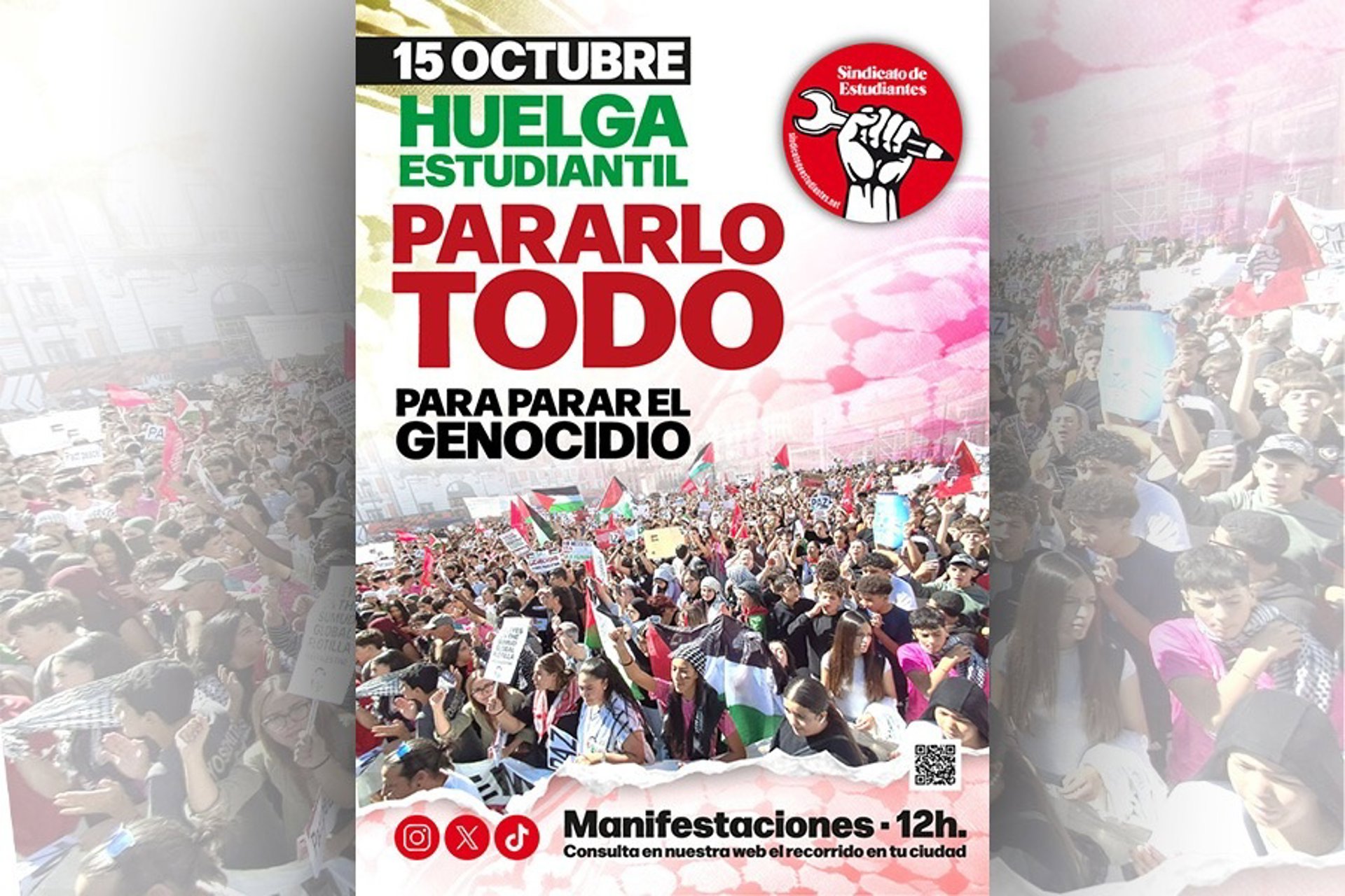 Según ha explicado en un comunicado, el 15 de octubre los sindicatos de trabajadores han convocado huelgas y paros y ese día el Sindicato de Estudiantes vuelve a convocar huelga general de 24 horas en todos los institutos y universidades.