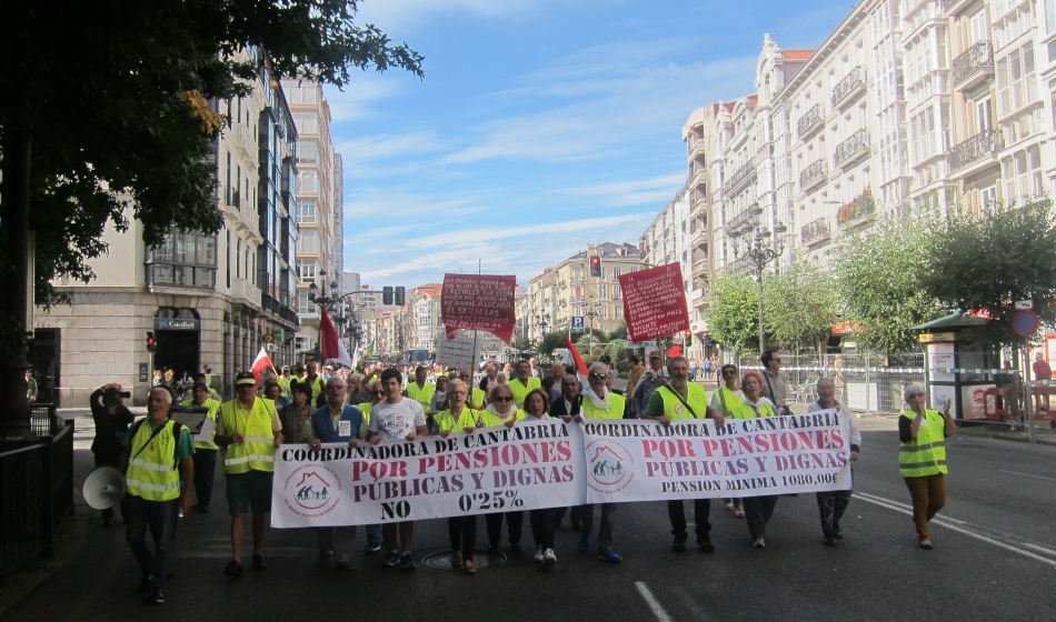 Varios cientos de personas -un millar según la organización-se han sumado a la manifestación convocada este sábado en Santander por la Coordinadora de Cantabria en defensa de las pensiones públicas, que ha transcurrido desde Valdecilla hasta los Jardines de Pereda.