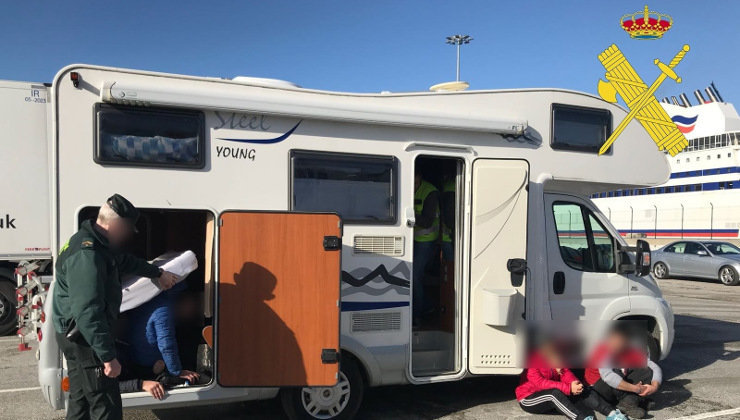La Guardia Civil detuvo el pasado 18 de enero en el Puerto de Bilbao a dos personas de nacionalidad española, residentes en Cantabria, cuando pretendían introducir ilegalmente en el ferry que viaja a Reino Unido a cuatro jóvenes albaneses, ocultos en el interior de una autocaravana.