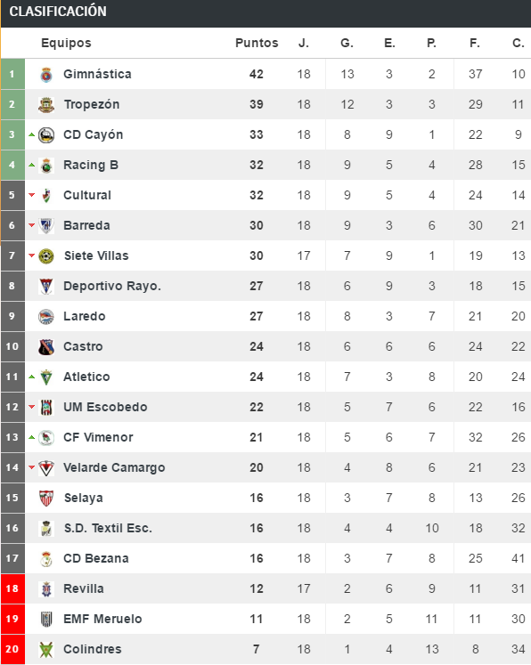 Tras este resultado, la Gimnástica se afianza en el primer puesto seguido a tres puntos del Tropezón, el Cayón y el Racing B, estos dos últimos muy alejados en puntos.