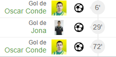 El marcador se puso a favor de los locales en el minuto 6 del partido, merced al gol de Primo. Eso hizo que el planteamiento de Chiri se afianzase y la Decana, por medio de Jony se fuese al descanso con un dos a cero en el marcados. En la segunda parte, Primo redondeó su actuación con un nuevo gol.