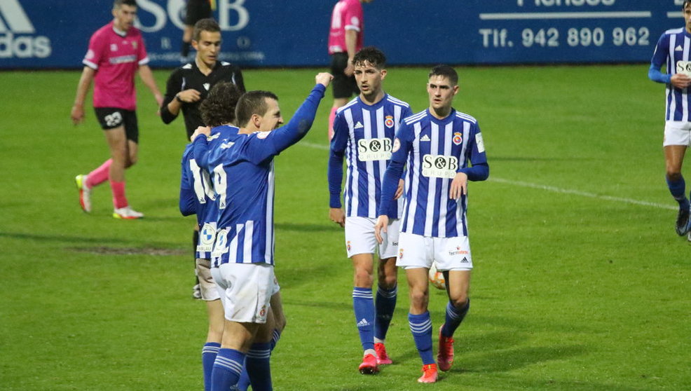 Jugadores de la Gimnástica celebran uno de los tantos ante el Colindres