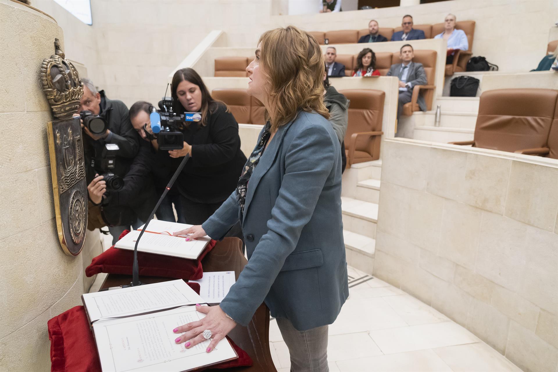 Obregón ha prestado juramento ante la Constitución Española y el Estatuto de Autonomía de Cantabria en defensa de los intereses de los cántabros al inicio de la sesión plenaria, tras ser proclamada diputada electa de la Cámara regional por acuerdo de la Junta Electoral de Cantabria del 8 de abril de 2026, en sustitución de Marcano.