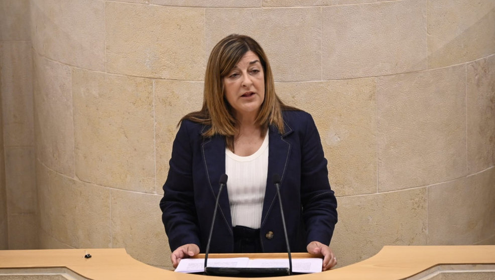 La líder del PP, María José Sáenz de Buruaga, en su primera intervención en el debate de investidura