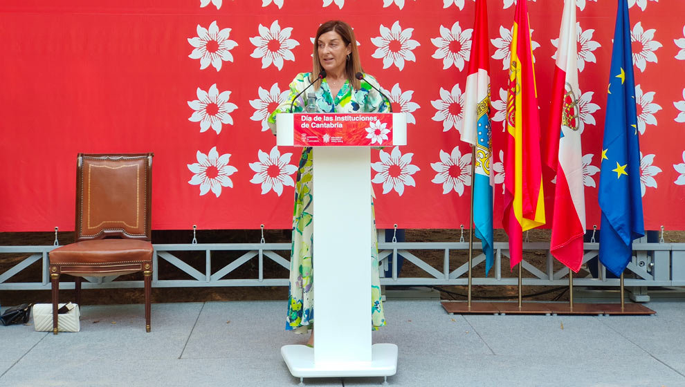 La presidenta de Cantabria, María José Sáenz de Buruaga, durante su discurso en el Día de las Instituciones | Foto- edc