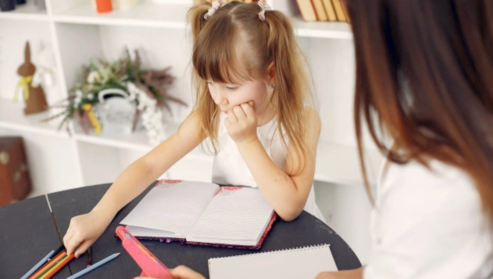 Una niña haciendo los deberes