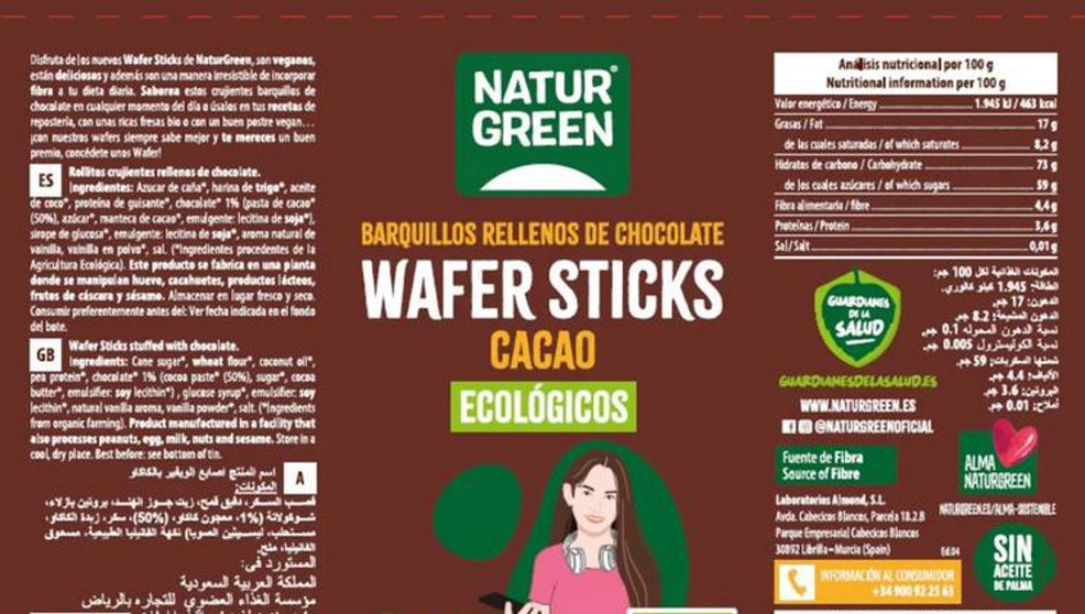 El nombre completo del producto afectado es “Wafers Sticks Cacao Ecológicos” y el lote en cuestión el L-24087 cuya fecha de consumo preferente es del 27 de enero de 2026. Estos barquillos rellenos de chocolate se comercializan en envases de 140 gramos.