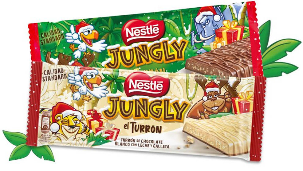 De esta forma, Chocolates Nestlé refuerza la gama que ahora cuenta con dos variedades: El original turrón Nestlé Jungly de chocolate con leche, que combina la receta de la tableta Nestlé Jungly con un relleno cremoso y galleta; y la versión turrón Nestlé Jungly blanco que cuenta con una cobertura y cremoso relleno de chocolate blanco con trocitos de galleta y una base de chocolate con leche.