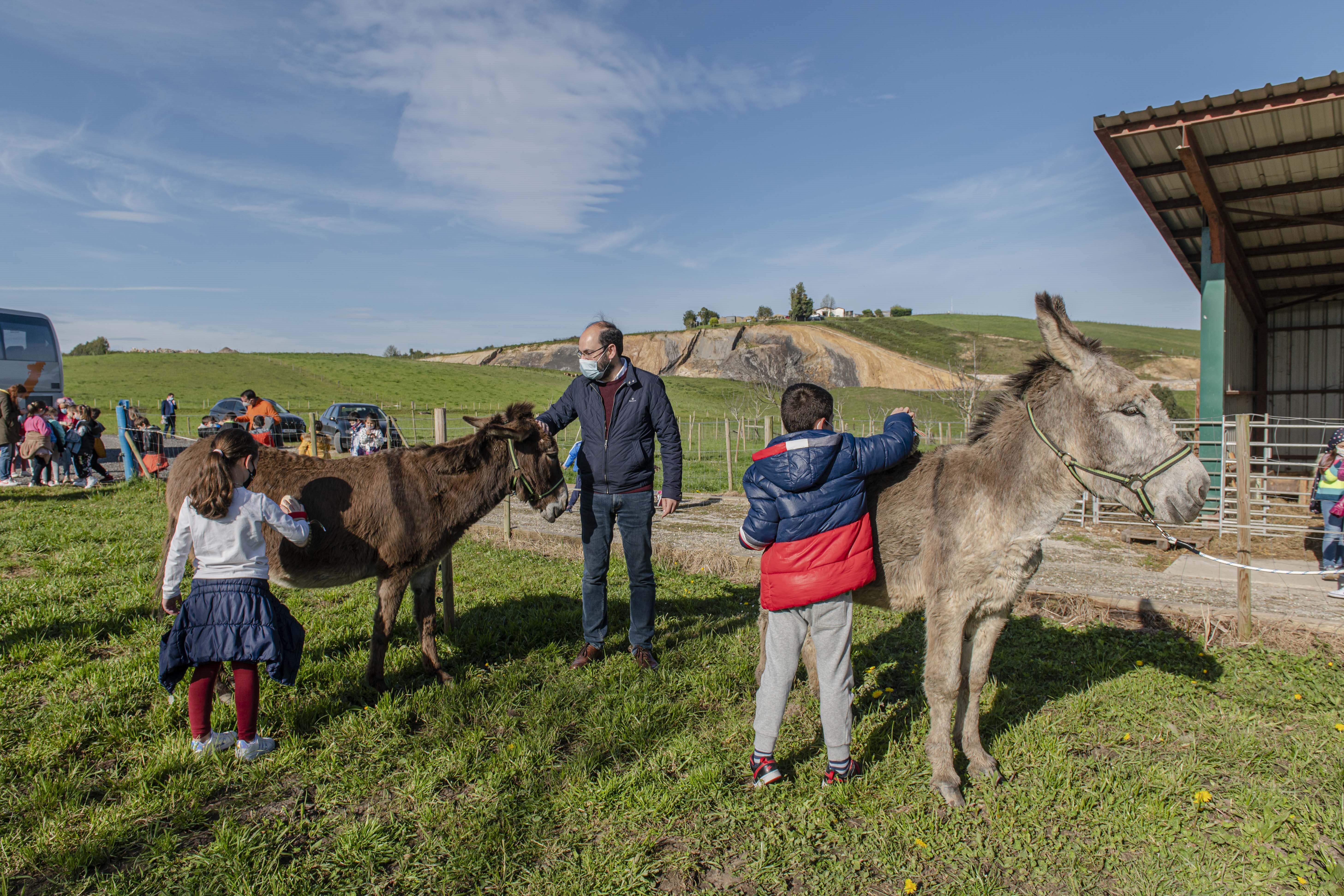 Además de la burrita a la que han puesto nombre y otro burro que hay en este momento en el centro, han visto las ovejas, gallinas y vacas, entre las que había varias terneras recién nacidas, y una pareja de conejos. En concreto, hay 23 vacas de la raza asturiana de los valles, de producción ecológica; una docena de ovejas y carneros, dos conejos y varias gallinas.