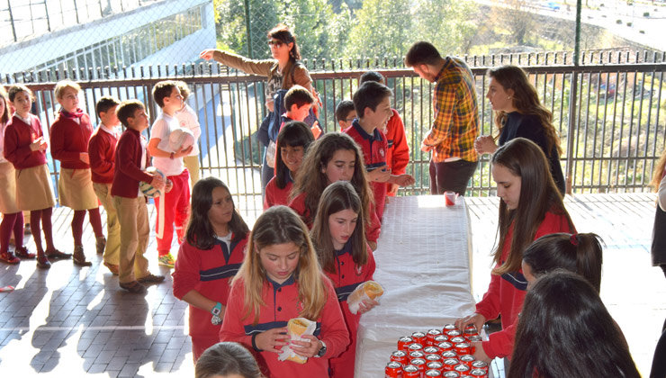Todo el colegio se pone manos a la obra. Los alumnos traen de casa, dulces y tortillas y el AMPA pone el fiambre, Este año se han hecho 663 bocadillos al precio de 5 €.