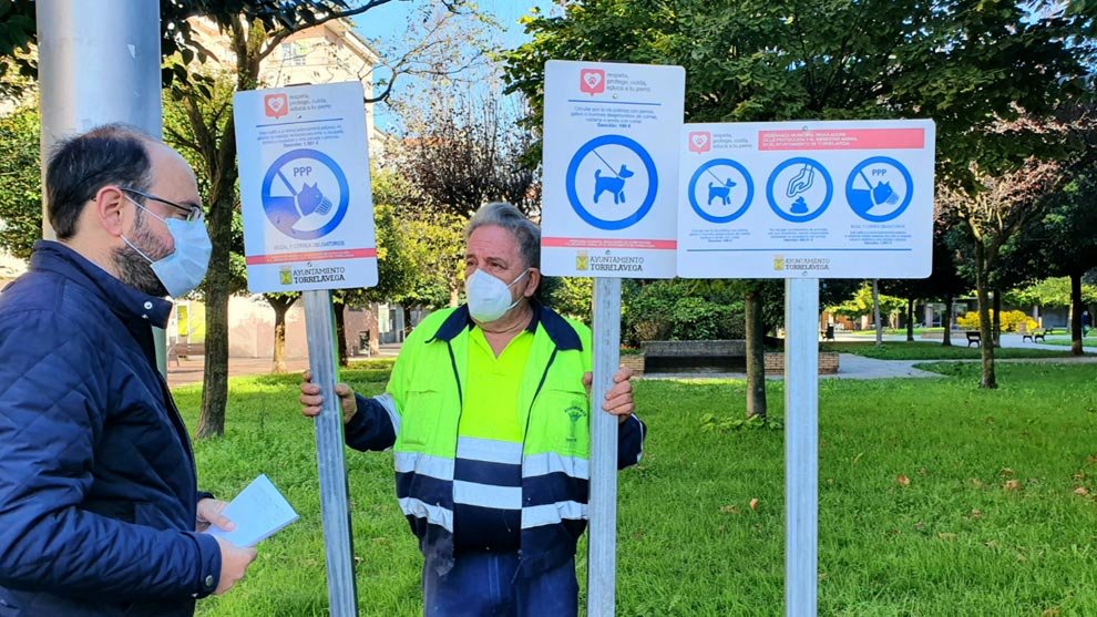 El Ayuntamiento de Torrelavega está instalando en las zonas verdes del municipio 95 señales que mostrarán las normas previstas en la ordenanza de bienestar animal y las posibles sanciones que conllevan algunos comportamientos.