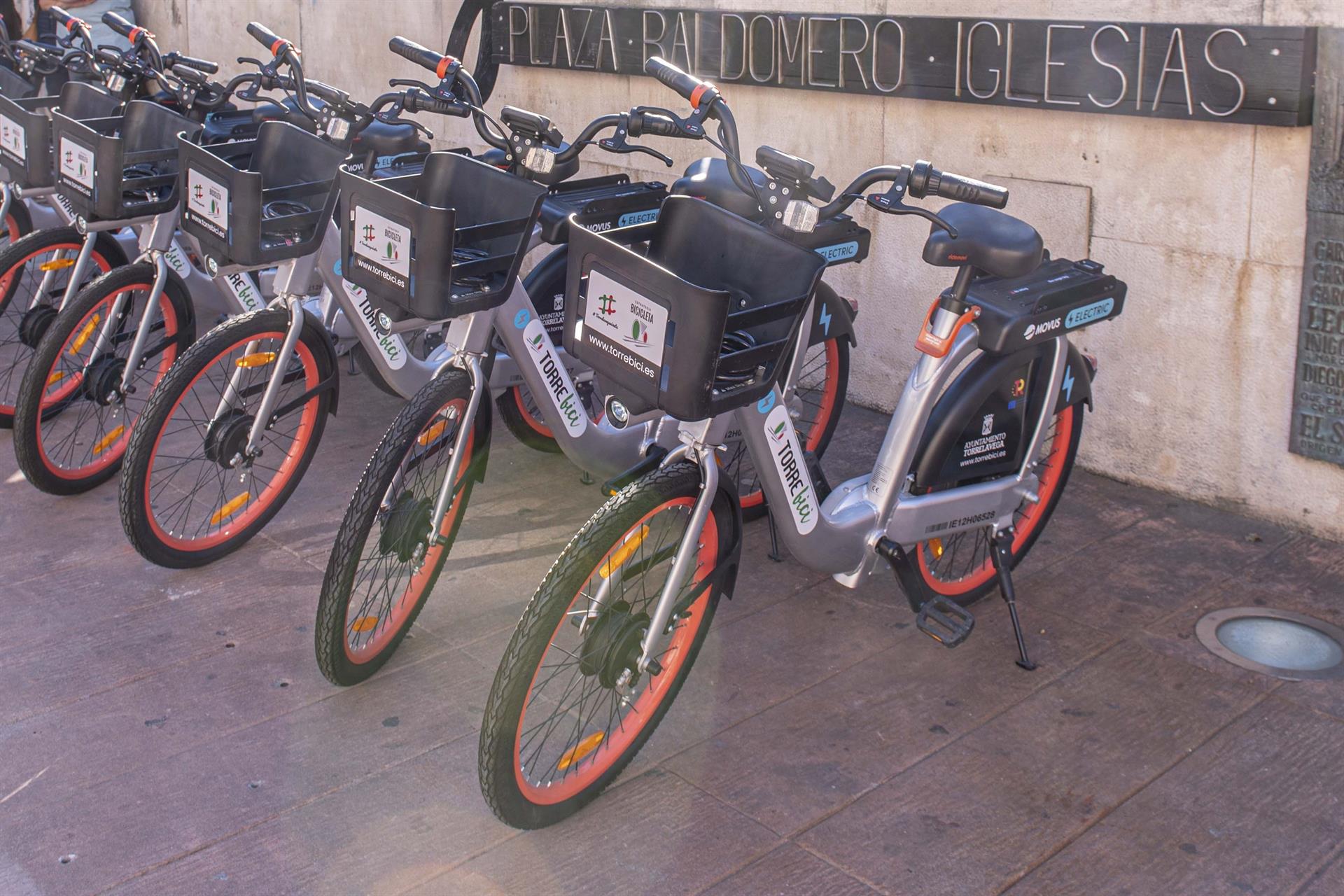 Bicicletas del servicio de préstamo 'Torrebici' en la plaza Baldomero Iglesias