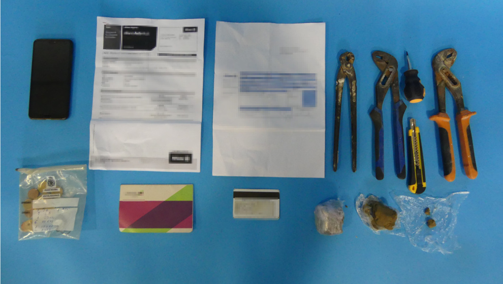 Al acercarse, comprobaron que la cerradura de la puerta del conductor estaba forzada y extraida la tapa situada junto al bombín de arranque. Ante estas evidencias, el sospechoso reconoció que se encontraba forzando el vehículo con la intención de robarlo. Al ser cacheado, se encontró entre sus ropas un cúter, un destornillador, tres tozos de hachís, con un peso de unos 86 gramos y un envoltorio de plástico conteniendo una sustancia pulverulenta de color blanco.