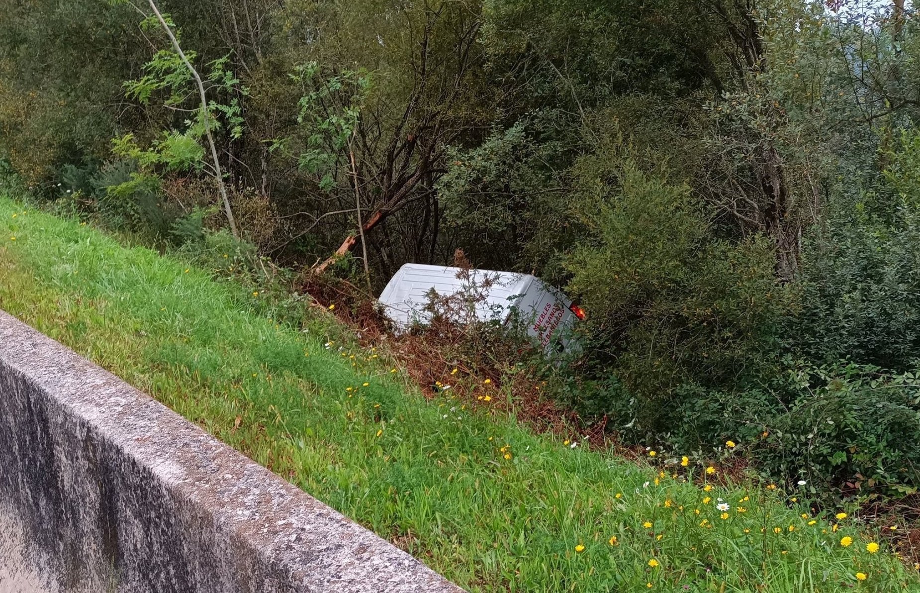 Una furgoneta ha caído esta tarde por un talud en la Autovía del Cantábrico A-8 a la altura de Udías.