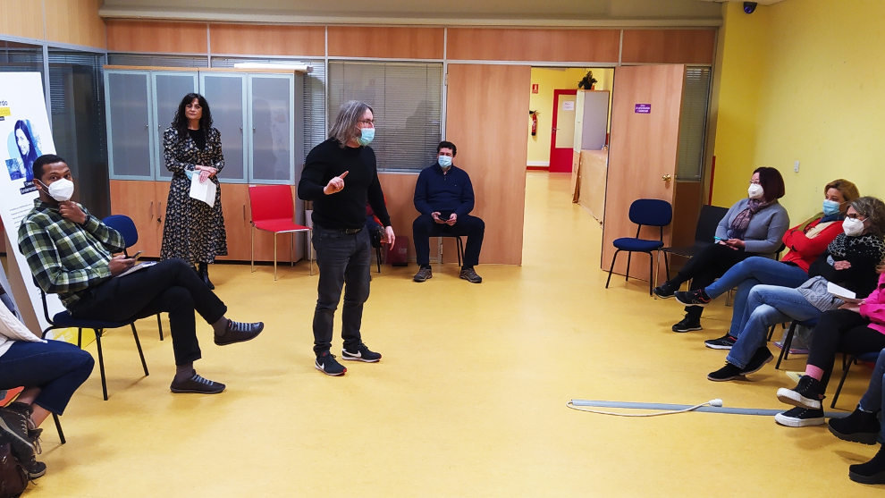 Los participantes de la Lanzadera de Empleo y Emprendimiento Solidario de Torrelavega han recibido durante tres días el taller 'Tierra Trágame', de manos del actor, director y dramaturgo cántabro, Fernando Rebanal, para mejorar las habilidades comunicativas en público y perfeccionar el lenguaje verbal y no verbal.
