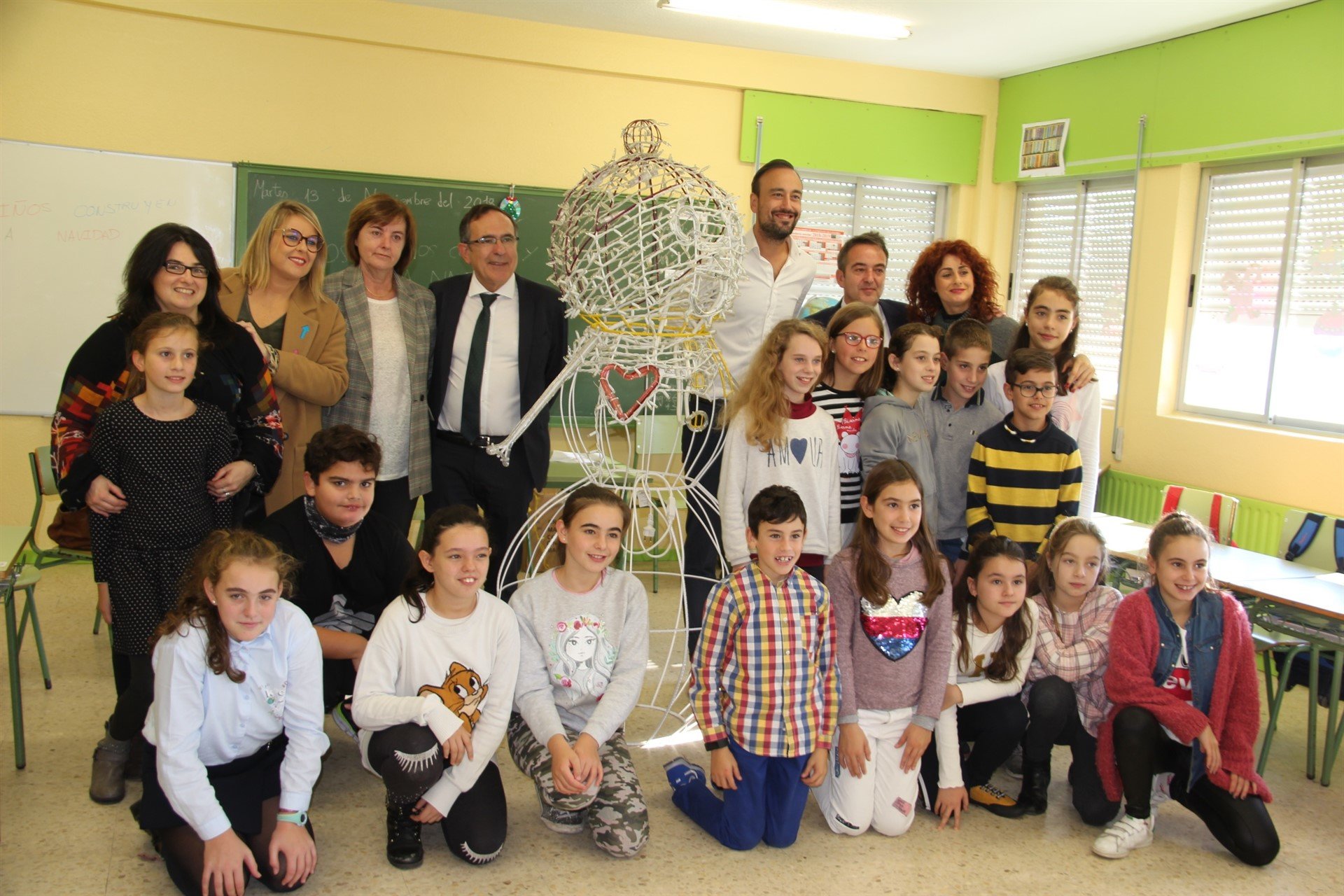 De cada centro se seleccionaron seis dibujos finalistas que destacaron por su originalidad, creatividad, viabilidad y vinculación con el espíritu navideño. Precisamente, los responsables públicos han acudido al colegio de Tanos, y han conocido el trabajo ganador, un gran muñeco navideño, muy original y diferente.