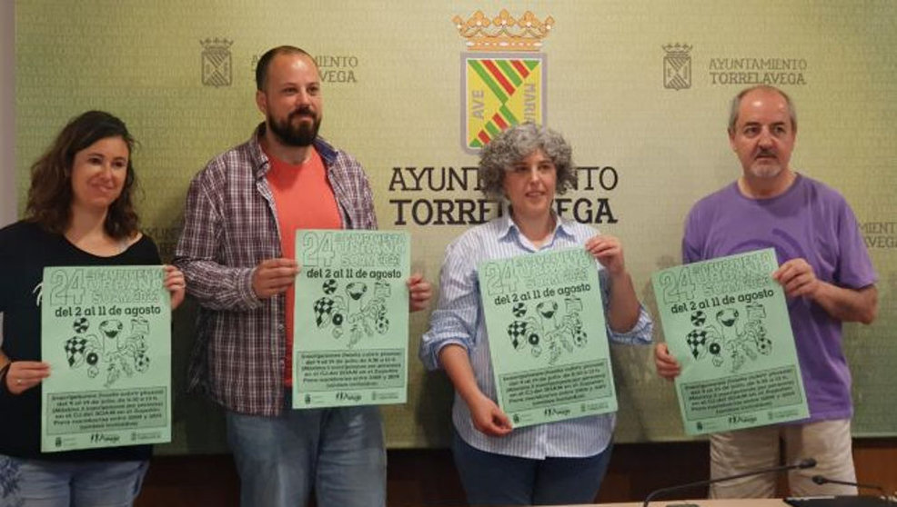 La concejal de Servicios Sociales en funciones, Laura Romano; acompañada por Pablo Blasco, director de la Fundación Amigó en Cantabria; y por Blanca Díez y Adolfo Díaz; ha presentado el XXIV Campamento Urbano ‘Veranea en tu ciudad’ que organiza esta Fundación y que se celebrará del 2 al 11 de agosto por toda la ciudad.