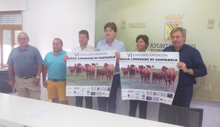 El concejal de Ferias y Mercados, Jesús Sánchez; acompañado de la Directora General de Ganadería, Beatriz Fernández; el presidente de la Asociación de Criadores Raza Limousine de Cantabria, Pedro Gómez; y el director del Mercado Nacional de Ganados, Isaac Bolado; han presentado el VI Concurso Exposición Raza Limousine de Cantabria que tendrá lugar el sábado 30 de julio, a partir de las 10 horas, en el Mercado Nacional de Ganados.